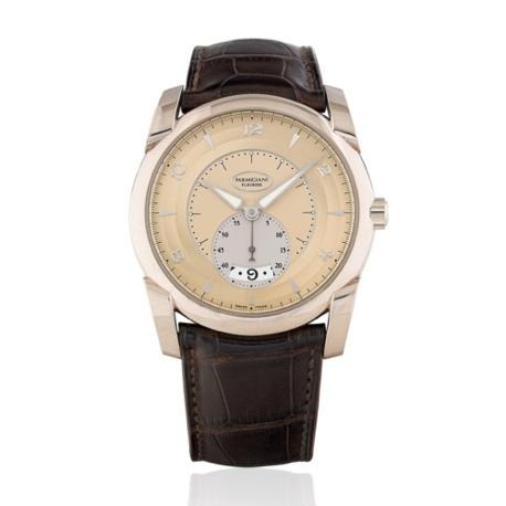 A standout piece is lot no. 129, A Pair Of Emerald & Basra Pearl Vintage Jhumkas from Rajasthan. Crafted in 22k gold, the jhumkas feature circular tops set with quartz in a floral lattice design, suspending domed motif adorned with green meenakari enamel. Finished with cascading Basra pearls and emerald beads, they embody the elegance of classical Indian craftsmanship. A highlight from the watch category is lot no. 195, the Harry Winston Avenue 18k White Gold Wristwatch. Powered by a quartz movement, it features a white dial with applied Arabic numerals, a diamond-set bezel, and a blue cabochon crown. Commenting on the jewellery selection, Romil Dalal, Jewellery Specialist – Giftex noted, “This curation reflects the breadth of jewellery as both adornment and legacy. From heirloom-inspired Indian forms to refined diamond creations, each piece has been selected for its craftsmanship, rarity, and enduring relevance to collectors.” Lot no. 63 features the Parmigiani Fleurier Kalpa Tonda 18k Rose Gold Wristwatch. Powered by a self-winding movement with an approximate 55-hour power reserve, it showcases a champagne dial with a running seconds sub-dial. The 18k rose gold case, polished bezel, exhibition caseback, and push-down crown complete the design.